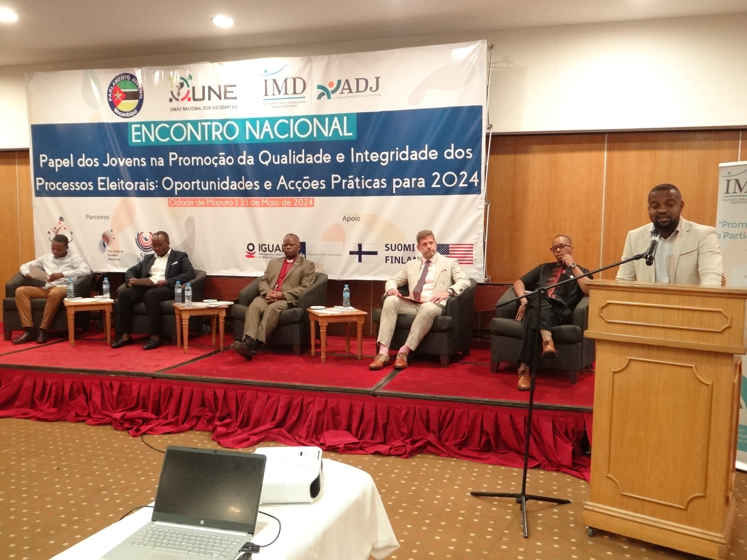 O Instituto para Democracia Multipartidária (IMD), a União Nacional de Estudantes (UNE) e o Parlamento Juvenil foram os organizadores do evento que juntou mais de 130 jovens e teve como principais convidados o Presidente da Comissão Nacional de Eleições (CNE), o bispo Dom Carlos Matsinhe, e o Conselheiro Político e Económico da Embaixada dos Estados Unidos em Moçambique, Eric Andersen.