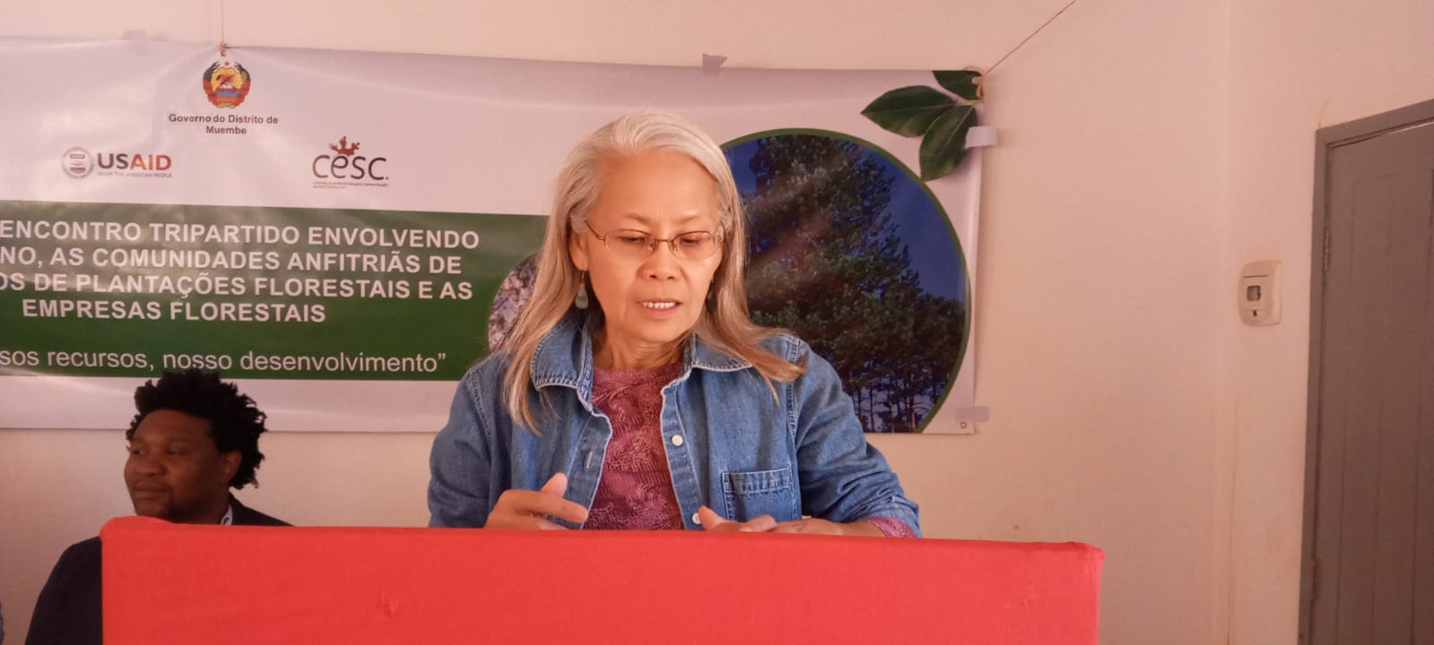 A representante da USAID, Antonina Espiritu, manifestou a sua satisfação por estar em Muembe a assistir ao primeiro encontro entre Governo, comunidades locais e empresas florestais. Antonina Espiritu disse que a USAID está interessada em ver as condições de vida das comunidades melhoradas através dos benefícios provenientes da exploração de recursos naturais.